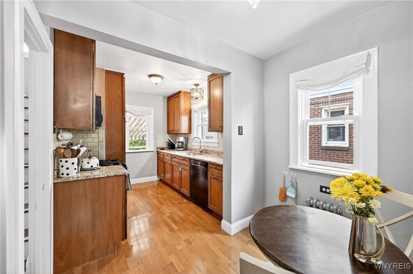 Charming best describes this lovingly cared for beautiful home surrounded by gorgeous gardens. You'll want to snuggle up on those chilly evening or mornings by the gas fireplace in the living room flanked with gleaming hardwood floors. First floor bedroom provides added convenience or could be used as office or bonus room. Updated kitchen treats you to ample solid maple cabinets, granite counter tops and ceramic tile backsplash making for a cooks' delight. Classic built-ins provide great storage. Generous sized bedrooms on the second floor also provide great storage with ample closet space. Additionally, there is a walk-in attic. The backyard is not to be missed providing you with the privacy with fully fenced yard, awning by Classic Awning and concrete patio. Basement has been totally waterproofed by Franks' basement with transferrable warranty. Showings begin Tuesday, 10/28/2025 @ 9am.