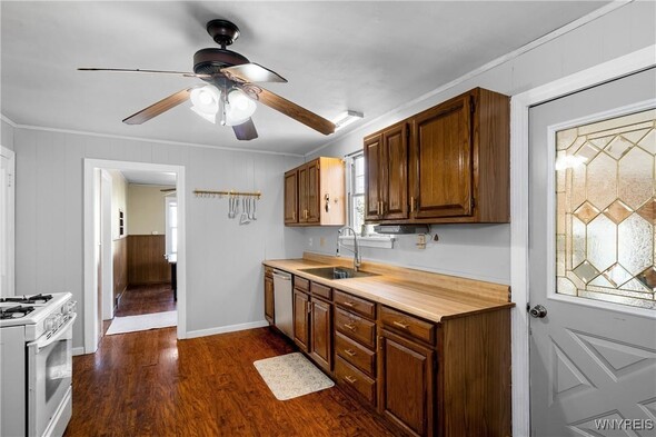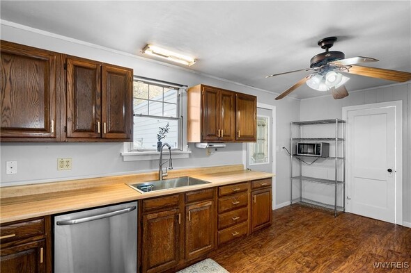 Welcome Home to 4096 Bayview. This home has so many possibilities and its history will show you what can be done to make this your ideal home. Entering through the driveway door, you're greeting to an indoor entryway which originally served as a one car garage. With the next owner it was transformed into a family room with wood burning stove and as owners change, so do needs, it's current use as an interior entryway to the home. This versatility makes this the right choice for buyers today. Entering, you're greeted to a large Kitchen providing great cabinet space, pantry and counter space. Off the Kitchen is generous size Dining Room with bow window letting all that beautiful natural light in. The Living Room overlooks a front deck perfect for watching those beautiful sunsets. Complimenting the first floor is a large bedroom complete with double closets. There are also one and a half bathrooms. The half bath is also unique as it also has laundry hookups which provides the convenience of a first-floor laundry. Upstairs you'll find two great sized bedrooms. Outside is a fully fenced side yard, patio for grilling and chilling and that beautiful deck spanning the entire front of the house. No shortage of places to enjoy the outdoors. We hope you enjoy your tour of this home. Just waiting for the next owner and more creative ideas.