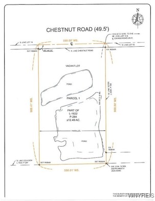 Great opportunity to own beautiful 12.29 ACRES of beautiful Land with Ponds. 550 ft along Chestnut Road, 989 ft deep. See attached Survey. Municipal Water is at street; To build, Septic and Propane would be needed. While this Land may be bought on its own, Seller's hope is to sell this parcel to Purchaser of 5948 Chestnut (house on 4.1 Acres) See MLS B1657954. Buyer would then own a 16.5 acre Parcel with ponds. Property is staked. Full-size 2024 Survey will be furnished. PLEASE DO NOT WALK THE LAND WITHOUT APPOINTMENT.