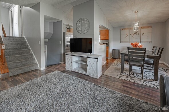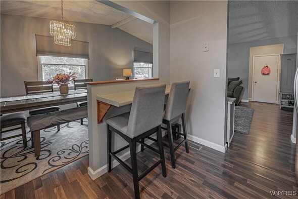 Location, location, location! Town of Lockport. This property offers 3 bedrooms and 1.5 bathrooms. The interior features an inviting open-concept living room, dining area, and kitchen, which was updated with new appliances in 2022 and includes a convenient breakfast bar. Additionally, there is a spacious family room equipped with a cozy wood-burning stove, perfect for cooler evenings. The primary bedroom boasts a walk-in closet, and the home also includes a partial basement, providing extra space. Further enhancing this home's appeal are its exterior amenities, including a 2-car garage and a private patio that is ideal for entertaining guests. The large and inviting yard offers ample outdoor space and privacy, with no rear neighbors, along with a shed for additional storage. This home is truly move-in ready! Open House Saturday, Oct 4th from 1-3pm.