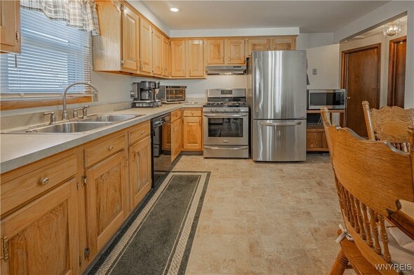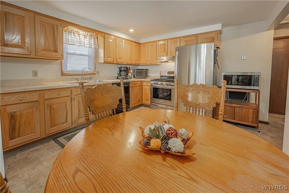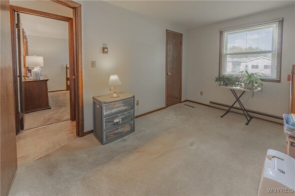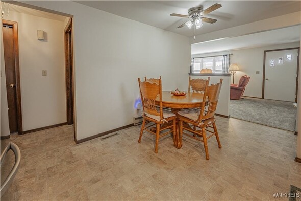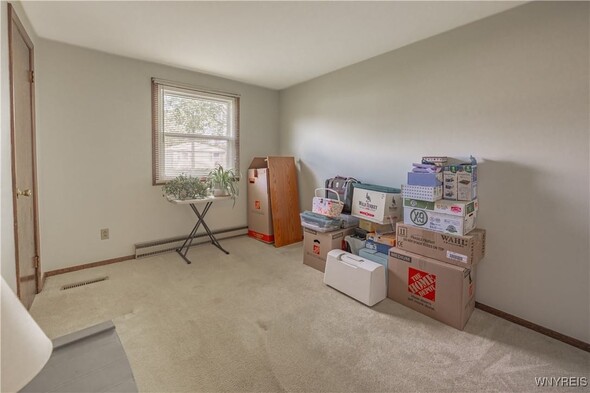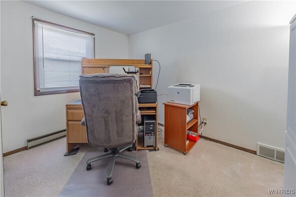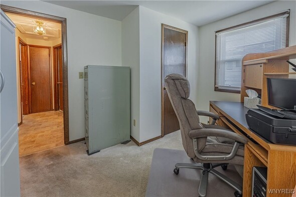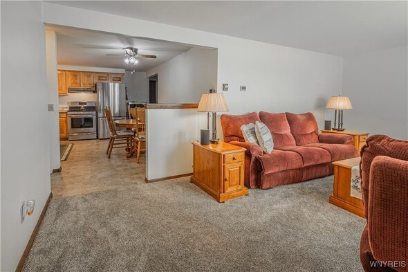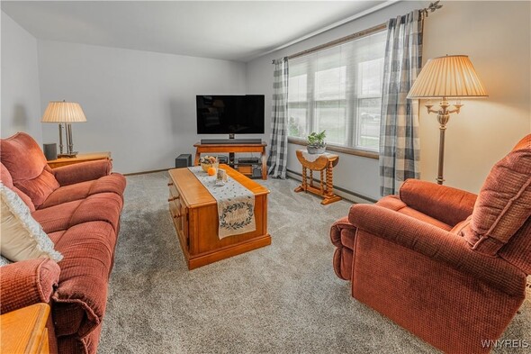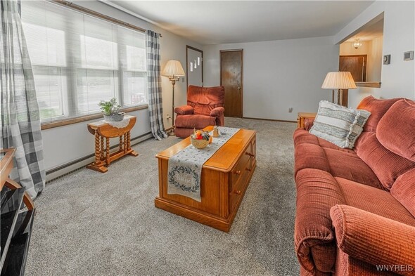 Well maintained 3 Bedroom 1 bath ranch. Freshly painted and new carpeting in living room (2025). Kitchen with newer appliances (2016). Basement is insulated; was an expansive woodshop. 2 finished bedrooms with closets. 2.5 car attached garage with Race Deck Garage Flooring. Single garage overhead door in rear as well as man door. Amish shed (2015) back yard. Large back yard which is partially fenced. Porch (2024). Updates: Sump pump 2013. Windows 2015. Furnace and AC 2016. Thermostat 2020. Electric baseboards are functional w/ individual thermostats w/ the exception of the kitchen. Solid home in convenient area. Delayed showings until Thurs Oct. 16 at 11am. Open house Sat 10/18 from 1-3pm.