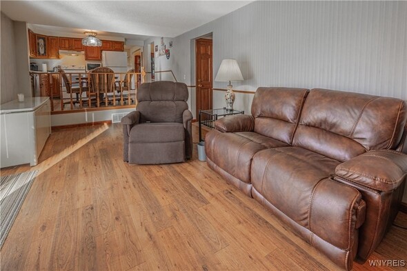 Location location! Spacious 3 bedroom 1.5 bathroom split level in desirable neighborhood. Family room with gas fireplace, dining room. Living rm w/ vaulted ceiling. Updated bathrooms. Primary bedroom with walk in closet. Oversized fenced in yard. Shed. Patio for entertaining. Basement with additional crawl space for storage. Updates: kitchen, family rm, and bedroom flooring 2018. Newer windows and sliding glass door (2017) Front door and side lights 2023. Furnace and A/C 2020. Roof 2022. New garage door. Gas fireplace w/ remote. New bathrooms.