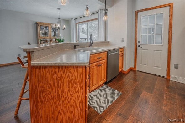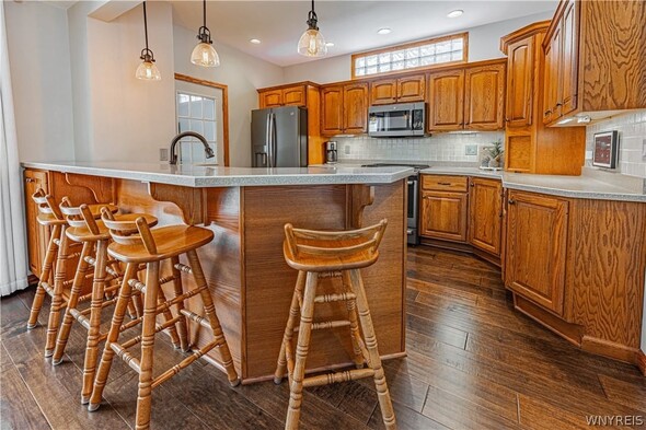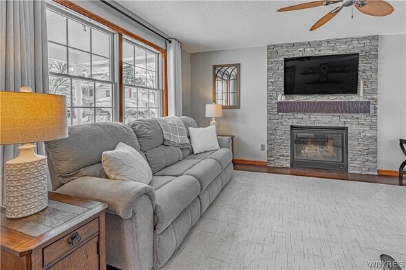 Pristine and move in ready! Fabulous and totally updated! Large covered front porch. Open foyer, inviting great room complete with a gas fireplace. The dining area opens to a kitchen boasting an expansive island, perfect for entertaining. The first floor also includes an enclosed back porch that leads to the backyard. A custom staircase takes you to the second floor, which offers three bedrooms with expansive closets and an updated bathroom featuring a skylight. The finished basement provides additional living space with a family room, a full bathroom, glass block windows, and extra organized designated storage space. The exterior is just as impressive, featuring a large front porch, a fully fenced backyard, a concrete patio, and a covered gazebo. Outdoor amenities include a natural gas line for a grill and heater, a shed, and a 1.5-car detached garage. The home has been meticulously improved with many updates, including the windows, kitchen, and bathroom. The furnace and AC were replaced in 2019 and include a booster system for maximum comfort. You name it; it has been updated. Showings start immediately. Offers due Monday February 16 by 11:00 am. Sellers have requested no escalation clauses.