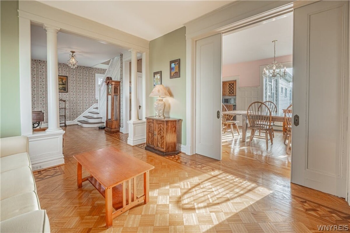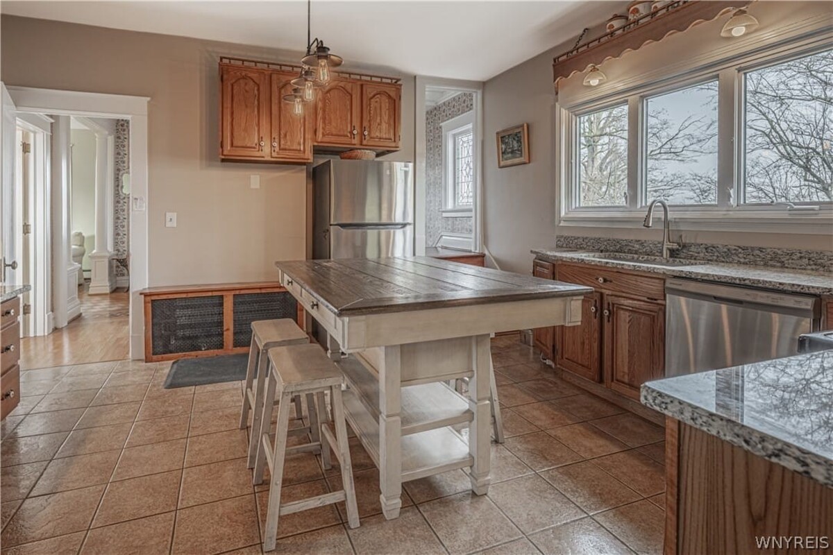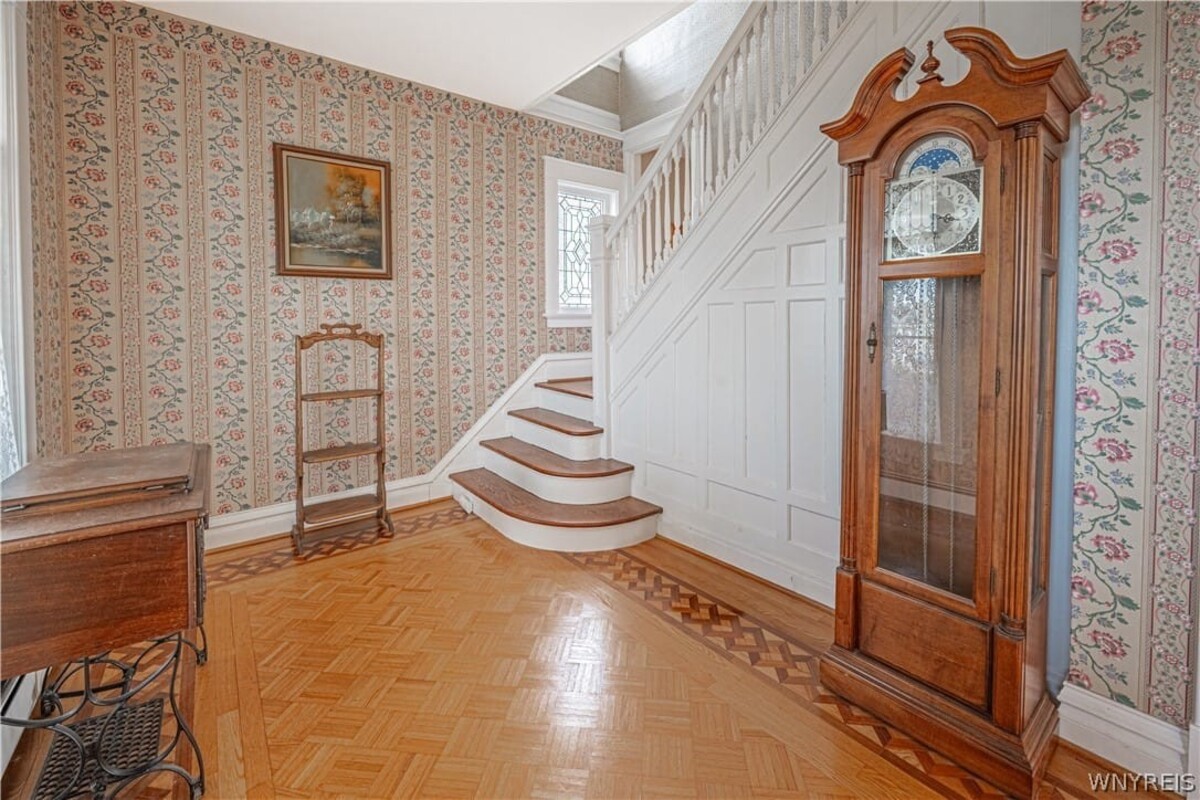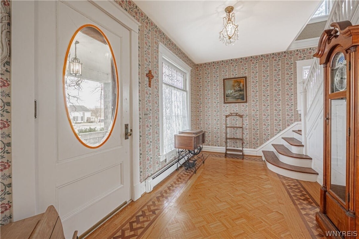 Beautiful and serene! 4.9-acre property featuring a 4/5 bedroom home and extensive outbuildings, including two barns (one equipped with horse stalls) and a separate garage with a woodshed. The main floor offers an open foyer, a living room with a wood-burning fireplace and inlaid hardwoods, a formal dining room, and a family room with a second fireplace. The kitchen includes 2020 granite countertops & appliances, Butlers Pantry with a beverage fridge. For versatility, a private-entrance in-law suite or office features its own bedroom, full bath, and dedicated climate control with separate electric heat and wall A/C. The second floor contains four large bedrooms and a full bath with double sinks, plus a walk-up attic. Key updates include: Roofs: House (2010, w/ warranty) and metal barn roofs approx (2010); Windows: Amish-installed and glass block basement windows (2011); Mechanicals: Boiler (2011), Hot Water Tank (2022), and a 1000-gallon oil tank.