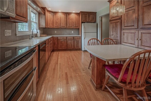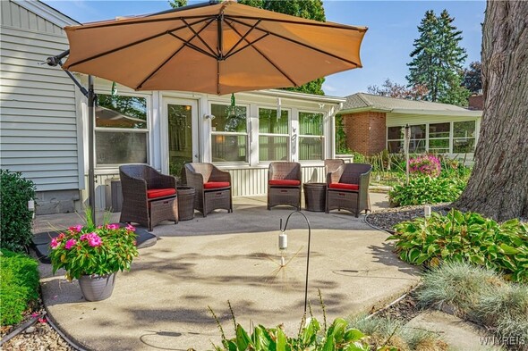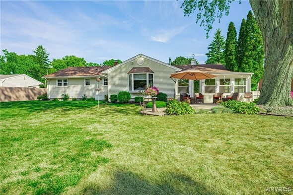 Impeccably maintained spacious ranch offering 3 bedrooms and 2 bathrooms on quiet no thru traffic, well maintained neighborhood street. Walking distance to schools, Kenan Community Center and conveniently located near all of Transits amenities. Mature landscaping, extensive exterior lighting, and concrete driveway enhance the welcoming curb appeal of this home. Inside space is not limited and relaxing is easy with multiple living spaces including a formal living room, den area, heated 4 season room, and fully finished basement boasting 2 separate rec areas, laundry, full bath, and storage area. The updated custom kitchen is a show stopper with custom cabinetry, ample storage and counter/prep space, kitchen pantry, and double sink overlooking the great backyard. Attention to detail is appreciated with beautiful hardwood floors, original glass door knobs, gas fireplace, large built-in bookshelf around a bay window, and ample storage/closets to make staying organized easy. Enjoy peace of mind w/ new roof (2020), updated windows, and back up generator. Offers will be reviewed as they are received.