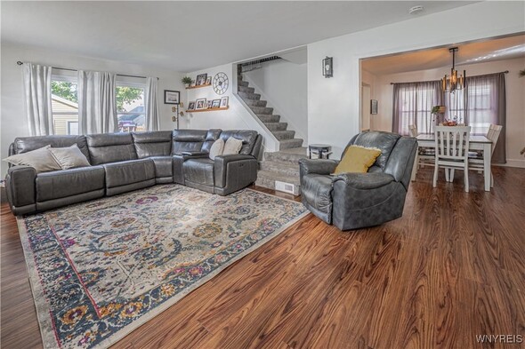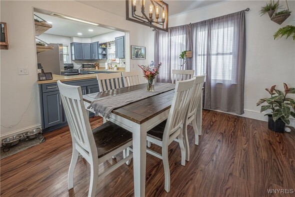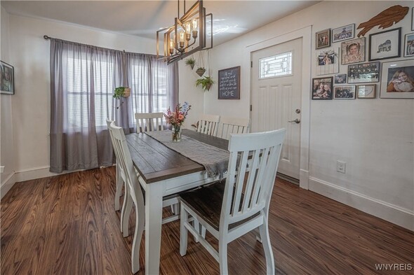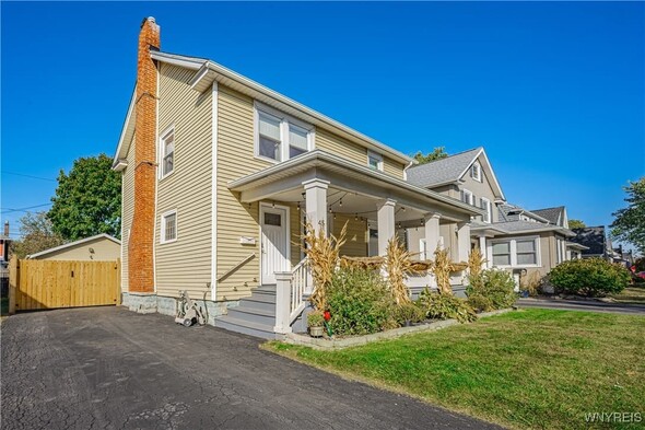 Welcome Home, move in ready 3bed 1.5bath located on desirable neighborhood street walking distance to schools. The first floor features laminate flooring, updated fixtures, 1/2 bath, and large case openings allow for open sightlines. The second floor has 3 generous sized bedrooms, full bath, and stair access to the partially finished attic flex space. Enjoy peace of mind with updated roof (2016), central air, vinyl windows & vinyl siding. Outside has a large covered front porch, fully fenced back yard with privacy fencing, and 2.5 detached garage w/ insulated garage door. Open House 10/11 11am-1pm and offers will be reviewed as they are received so dont wait to view this great home.