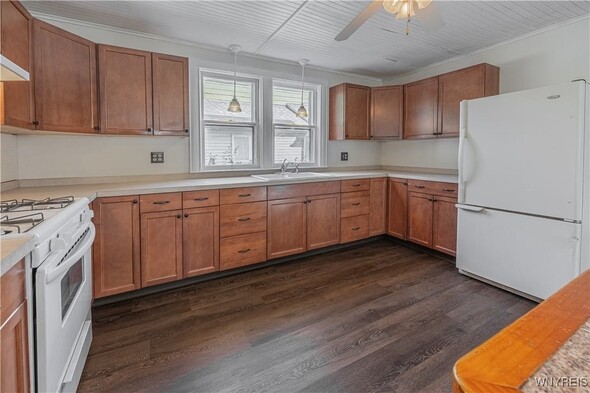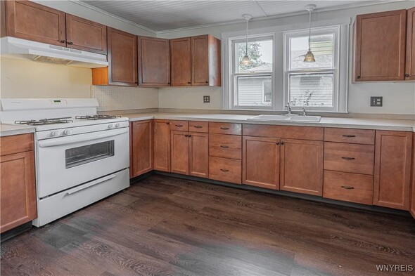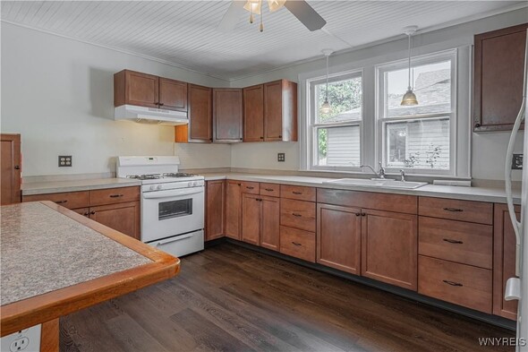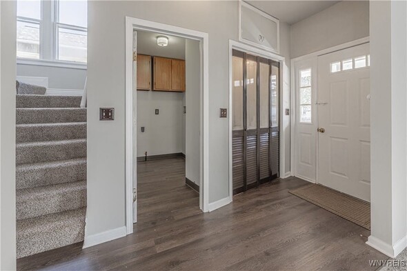 True turn key 4 bed 1.5 bath colonial with large covered front porch. Enjoy peace of mind with a new roof and gas furnace. Other recent updates include new flooring and fresh paint interior and exterior. The spacious first floor has an open concept living room and kitchen; laundry room and 1/2 bath. The second floor has 4 bedrooms and access to a walk-up attic with flex space potential or an abundance of storage. The private backyard features a 25x10 covered patio and shed. New furnace (2024). Great property walking distance to historical downtown Lockport amenities. Offers will be reviewed as they are received.