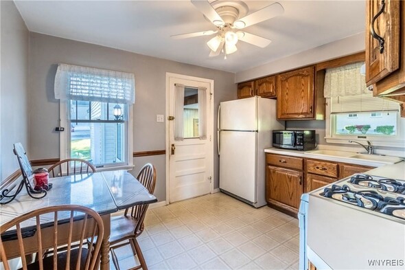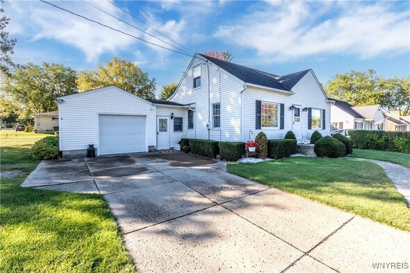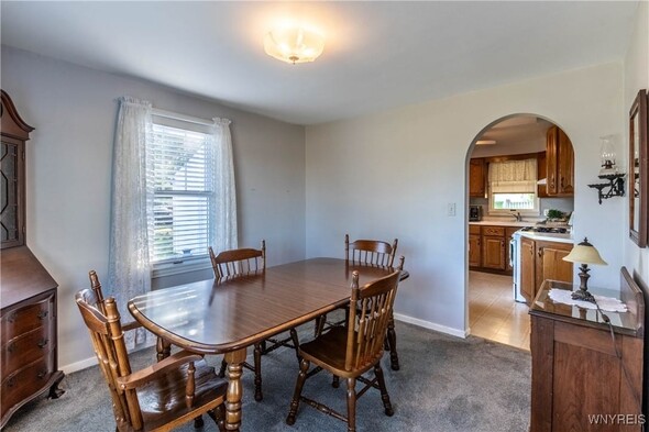 This beautifully maintained home on a huge corner lot offers so much in its compact 1080 sq ft space. It features a generously sized mudroom/breezeway, 3 spacious bedrooms, 1 full bath, a large living room, and even a formal dining room or flex space. The kitchen has ample counter and cabinet space with all appliances included, plus plenty of space for a small dining table, free standing storage, or a coffee bar. The living room and first floor bedroom have hardwood flooring underneath the newer plush carpets (2 yrs.). The gem of this home is the covered patio and large backyard that makes this an amazing home for warm weather entertaining and relaxing. Siding and windows throughout have been updated. Roof (8 yrs.) Washer and dryer (2 yrs.) Sump pump (2 yrs.) Offers due Wednesday, October 15th @ 12pm.